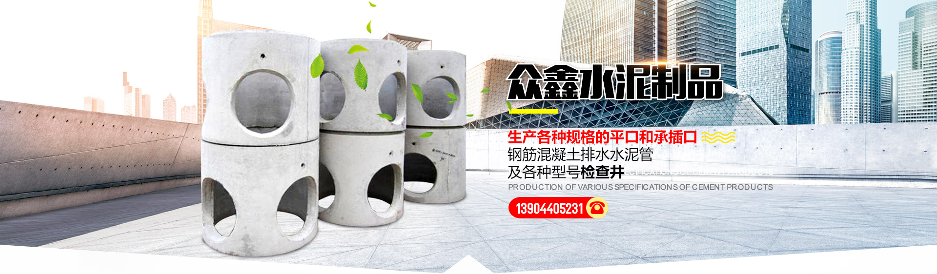 吉林眾鑫水泥制品有限公司,位于吉林省吉林市龍?zhí)秴^(qū)江北鄉(xiāng)官地村,交通便利,廠區(qū)占地面積2萬余平,公司秉承客戶至上,信譽為首,以人為本,安全為先為經營理念,其主要生產各種規(guī)格的平口和承插口鋼筋混凝土排水水泥管,水泥預制檢查井、u型槽等水泥制品。適用于城市市政、污水處理、基建、公路交通、住宅小區(qū)、工業(yè)園區(qū)、工業(yè)、農業(yè)深井、民用打井等領域。